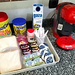 Der er en spiseplads og et fladskærms TV med satellitkanaler i hvert værelse i ferielejlighed. Separat toilet, et badekar og en bruser opbevares på badeværelset.